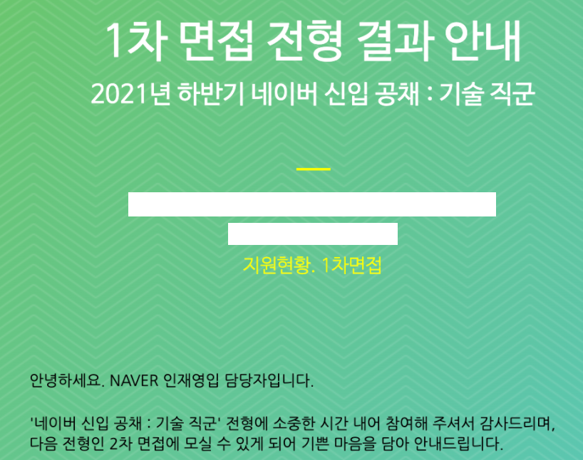 다행스럽게도 면접관분들께서 나의 역량을 조금이라도 좋게 봐주셨는지 1차 면접에 합격했다.